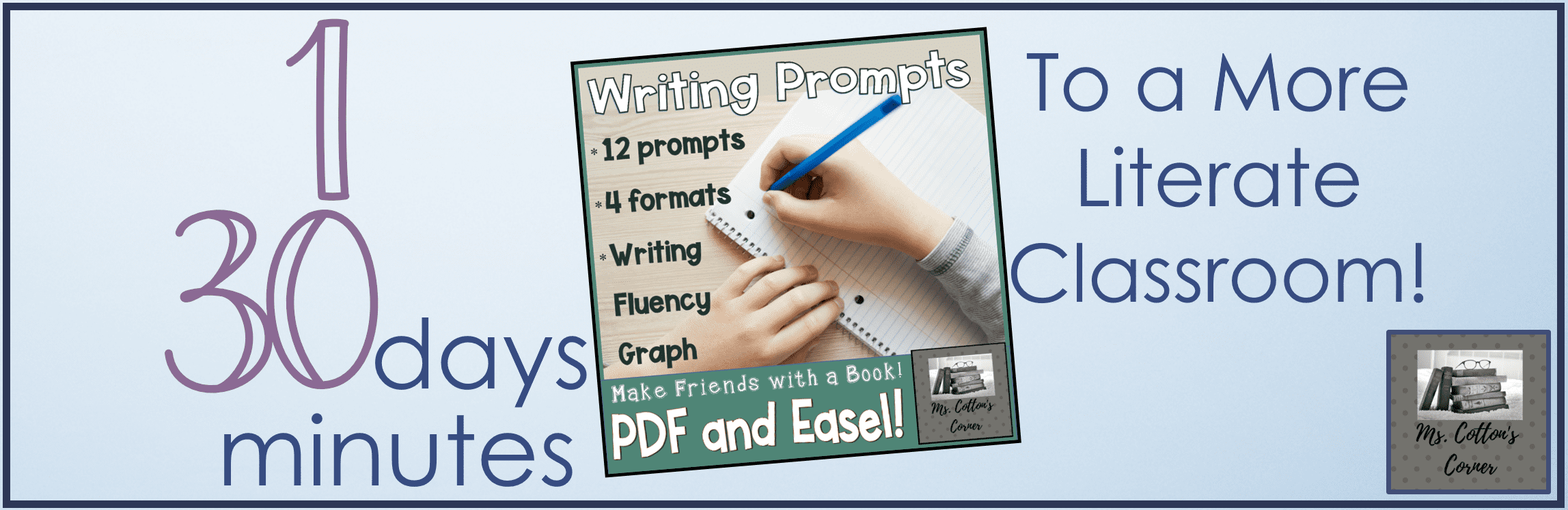 Please grab this free download to help you try SpeedWriting in your classroom. This one-pager walks through the steps, and it is included in 12 Book-Themed Writing Prompts on TPT. Check it out today!
